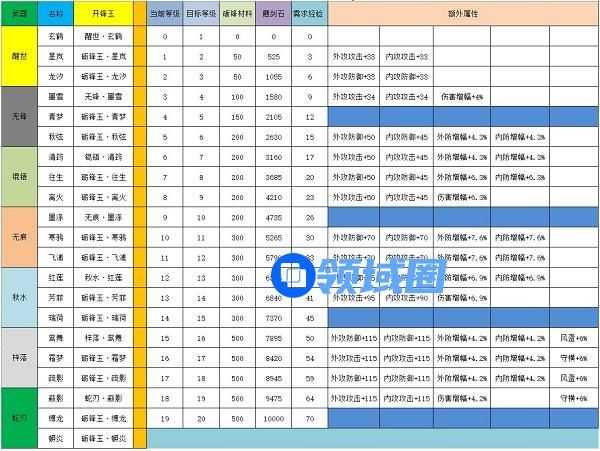 2.砺峰需要的等级(经验值):升级或者开锋武器,增加历练等级,升级一级剑灵等级+1,开锋一个武器的分类+1.升级剑灵不会消耗总等级(经验值)。