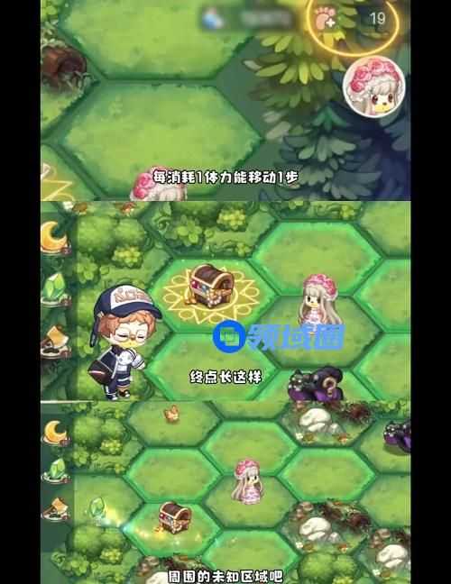 5、进入探险!每消耗1体力能移动1步,终点是魔法阵上有一个宝箱有多余的步数可以去探索周边的区域,获取更多月亮结晶(可兑换时装)。