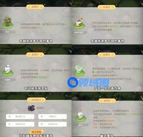 果树、神秘的金斧头、创造使、怪怪旋风、幽灵、神奇帽子(答题)、幸运转盘,不同时间产生不同效应!有好有坏!