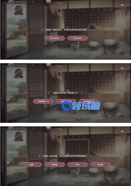 2、屋内:文鼎、武鼎、药钵、坐垫、飞升仙丹配方、变人仙丹配方、仙露一二三勺各一。