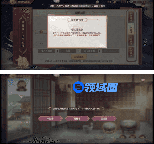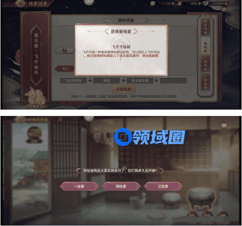 5、界面调查武火鼎(大鼎)选三炷香得到飞升线结局线索“我欲成仙”。