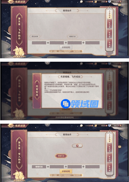 6、最后根据上一章的选择关联各自的结局线索过关。