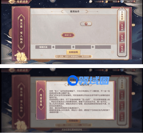 5、界面调查文火莲花鼎(小鼎)选一柱香得到救人线结局“嫦娥归来”。