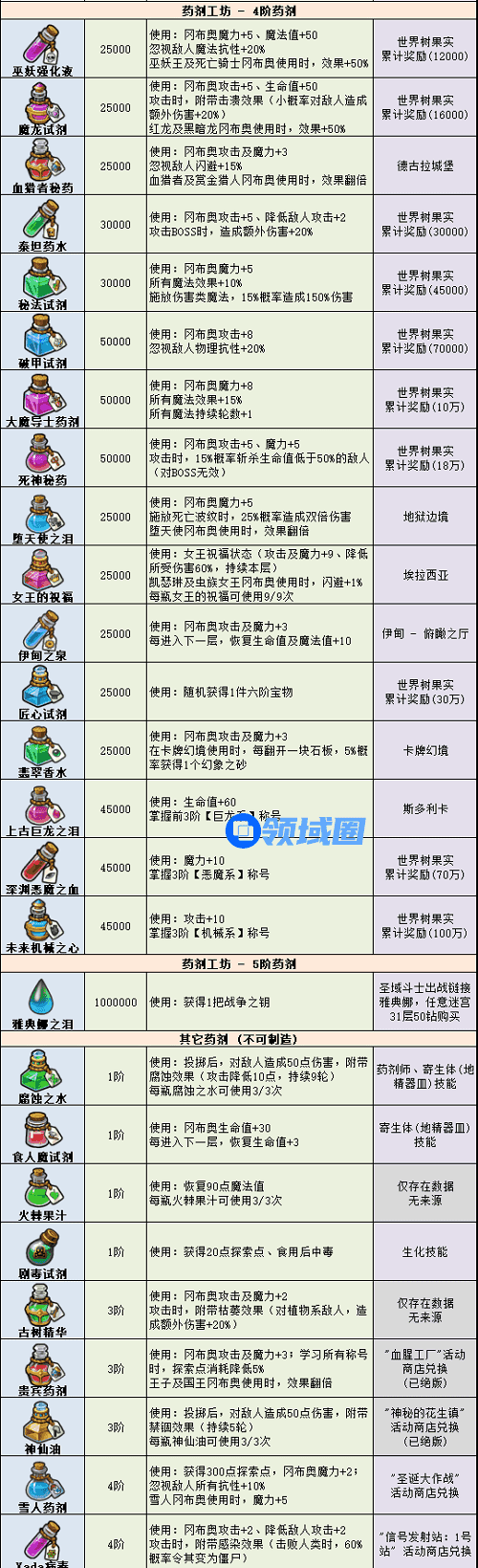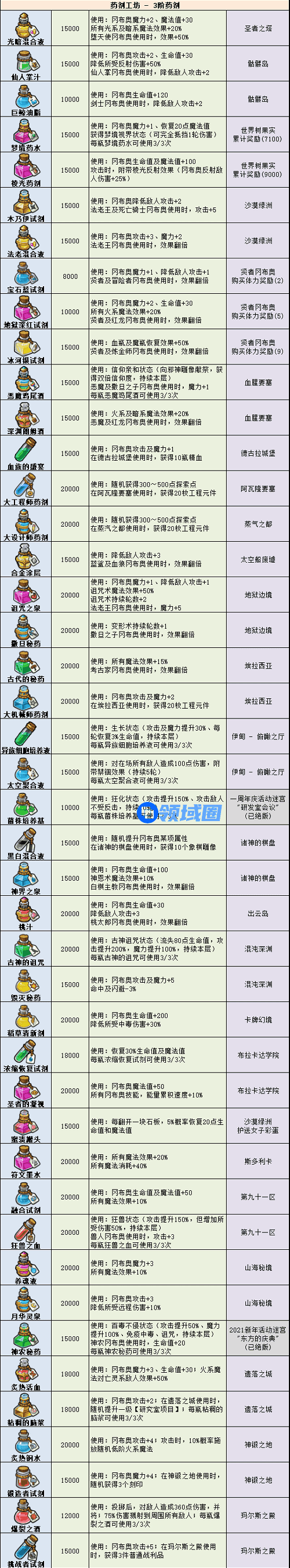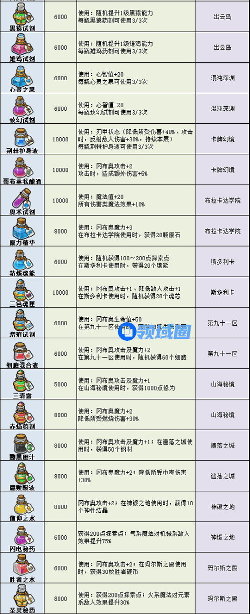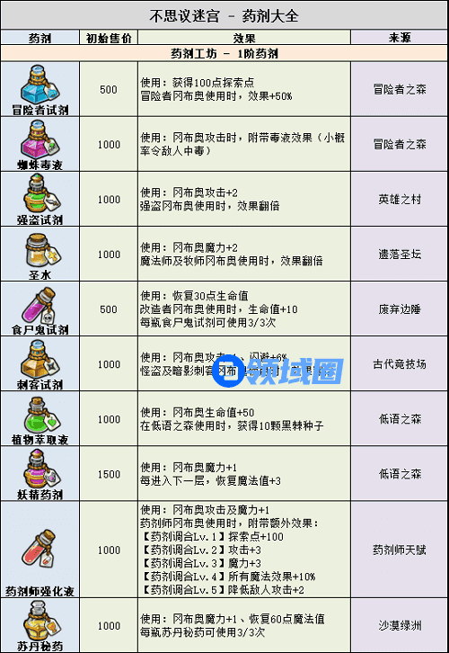不思议迷宫药剂大全2022最新