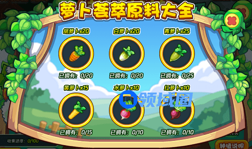 3、活动需要大家现购买白萝卜或者胡萝卜种子进行种植,当农作物成熟后可以概率获得其他种类萝卜种子,所需种类和数量如下: