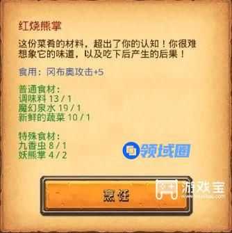 不思议迷宫红烧熊掌是周年庆越野迷宫中的一个烹饪菜肴,想要制作需要放入对应食材才可以,游戏宝小编带来不思议迷宫红烧熊掌菜谱攻略,一起来看看吧。