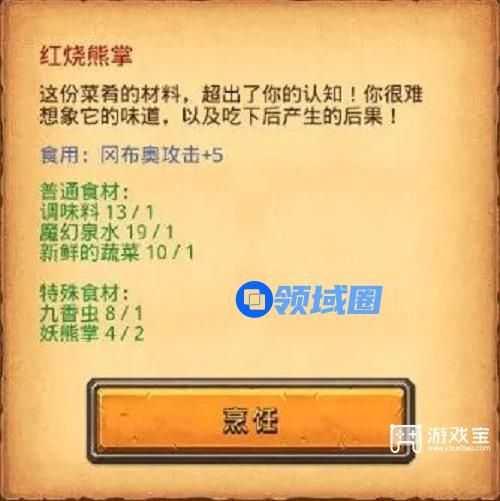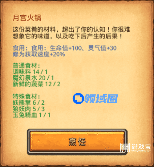 4、迷宫内烹饪菜品红烧熊掌、月宫火锅。
