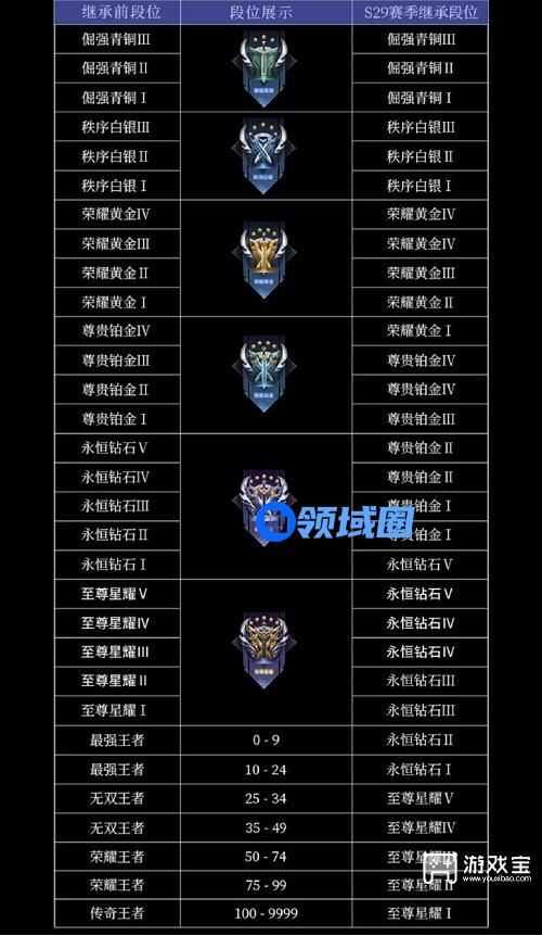 王者荣耀s29赛季马上就要结束了,s30赛季又会重置段位,游戏宝小编带来王者荣耀s30段位继承表一览,一起来看看吧。