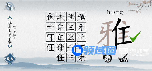 2、不知道这19个字是哪些的可以参考上面的答案在雅字上面进行填写,19个字找齐以后就可以通关了。