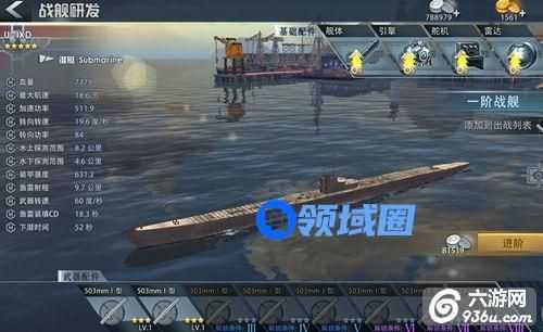 在属性方面,可以看到,基本属性中,初始的航速就达到18.6节,这在潜艇中算的上非常出色的属性。
