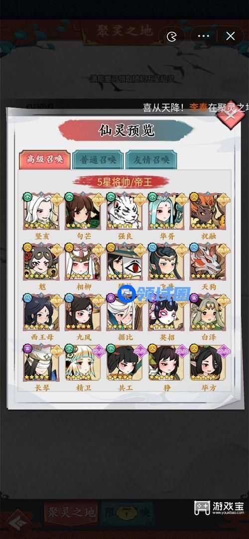 4、依靠飞廉、帝江输出,同时英招和飞廉可以打出连环控制,华胥和白泽加血解控,进可攻退可守,圣域位置可补任意玉虚角色。