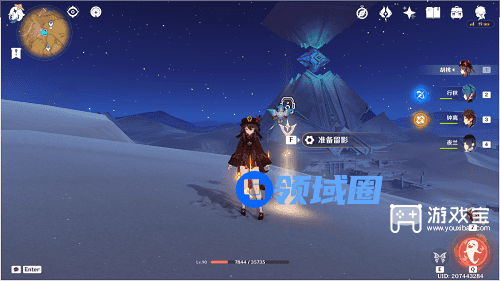 2、装备小道具「留影机」,使用火元素角色,准备留影。