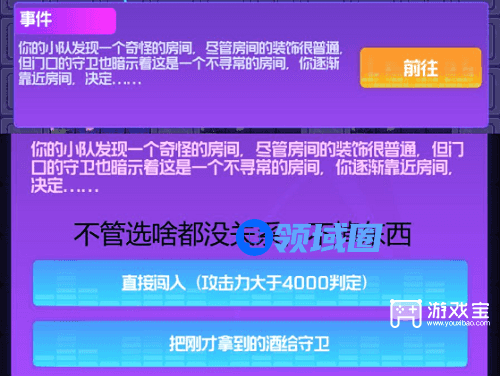 2、第二层问号房间找到图示事件这里选一选二都可以,无道具。