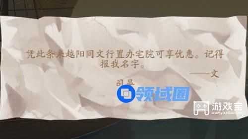 花亦山心之月再续蓝花楹第二天线索为凭此条来越阳同文行置办宅院可享优惠,记得报我名字,游戏宝小编带来花亦山心之月再续蓝花楹第二天攻略,一起来看看吧。