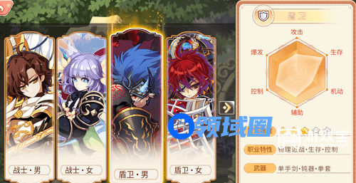 2、盾卫:盾卫侧重于防御,辅助职业主要是控制和生存能力比较强,和大多数游戏中辅助职业一样,这款手游中盾卫玩的人是最少的,毕竟一手拿盾,一手拿武器。两把武器,缺没有别人一把伤害高。谁都不乐意。