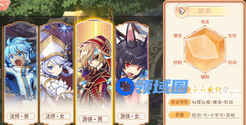 4、游侠:游侠是游戏里人气仅次于战士的职业,有着四种武器可以选择,这意味着他有四种技能输出模式,爆发高,机动性高,但这同时意味着操作难度高,技能命中率是个问题。