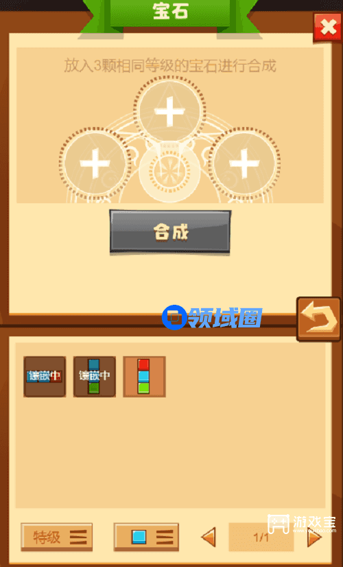 3、中级宝石的合成一共需要3块初级宝石,玩家们可以随便选择,高级宝石也同样需要3块中级宝石的合成,合成高级宝石玩家们就可以开始镶嵌了,选择合适的宝石镶嵌在图纸上就像俄罗斯方块一样堆积,在图纸上堆积好的宝石可以大幅度强化属性。