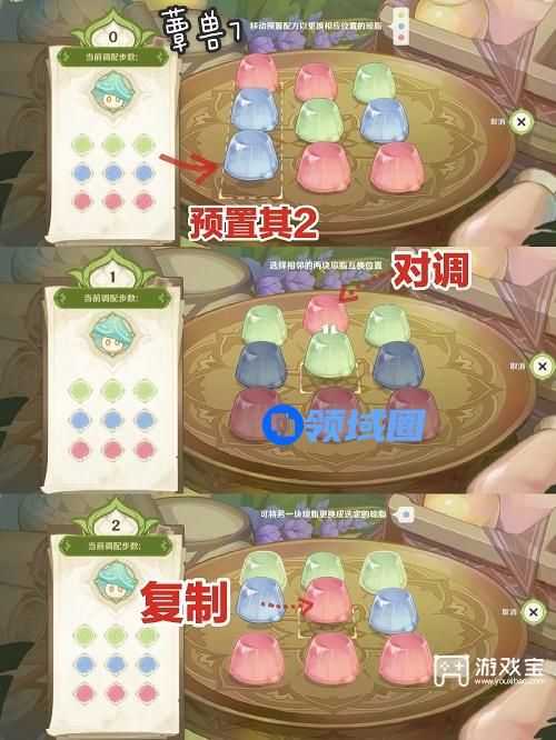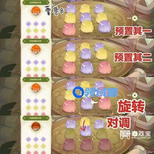 4、不知道怎么旋转的按照上图的对调就可以通关了,以上就是原神智巧灵蕈大竞逐第三天潜能焕发满奖励攻略了,希望可以帮到大家。