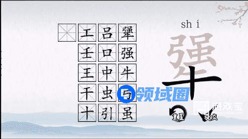2、不知道这16个字是那几个的,可以参考上图的字在犟字上写出来然后就可以过关了。