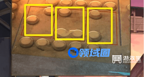 7、查看小女孩身后的墙壁,对照拾取纸片时得到的盲道线索,找到三个红框内圆点图案对应的符号。