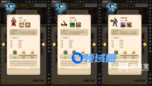 7、修士:一技能群体480%攻击,机率多打一段120%攻击,二技能被动30%机率降低敌人闪避命中。