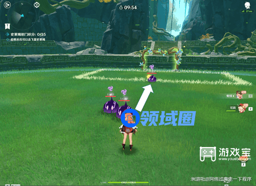 活动场地共有东南西北四个方向球门,一个小雷史莱姆的积分为1分,一个大雷史莱姆的积分为5分。单人下达到35积分即可完成挑战。
