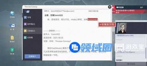 7.打开【邮箱】,登录目标人物的邮箱。查看【已发送】邮件,收集Hitalk账号【903020405】。查看【收件箱】邮件,收集部门负责人姓名【Tom Blanco】。