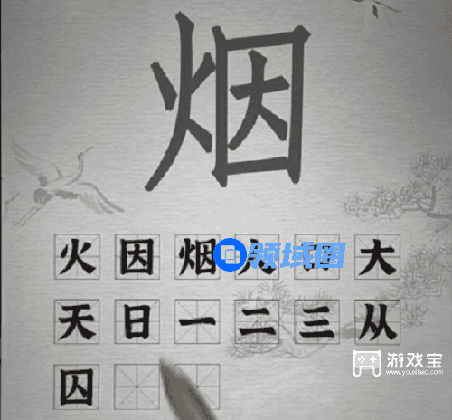 1、火、因、烟、人、口、大、天、日、一、二、三、从、囚、灶、川。