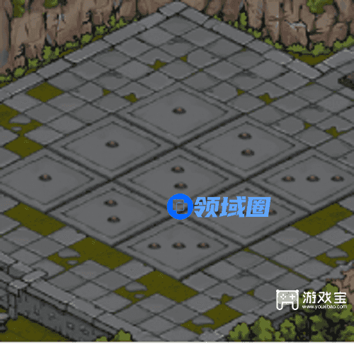 9、第二关华容道,在壁画处选择按下机关,开启游戏,需要将石堆里的玄龟雕像移动到固定方位。