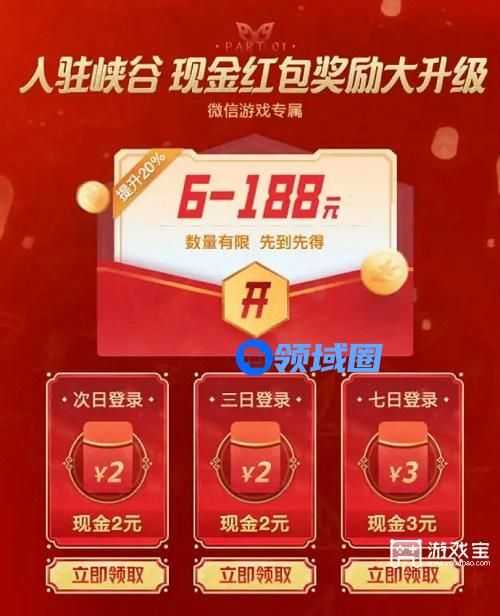 2、VX区最新红包活动,登陆即可,暴击最高188元,邀请好友入驻峡谷,还能再瓜分奖金。