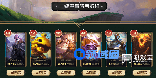 3、折扣分为3折、5折、6折,每位召唤师在每个大区有1次机会获取专属皮肤折扣优惠,所以要想好了再买哦。