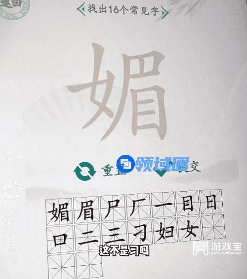 汉字找茬王最新找字关卡中,需要玩家从媚上面找出16个汉字后才可以过关,游戏宝小编带来汉字找茬王媚找出16个字攻略,一起来看看吧。
