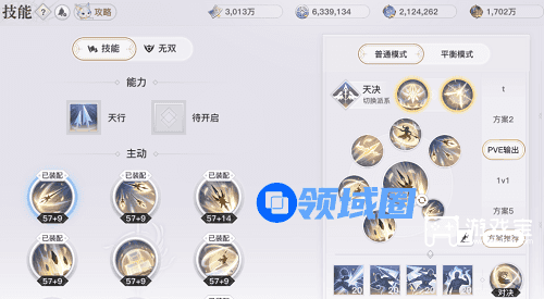 由于在PVE中,输出更为重要,因此在这套组合中,飞空之后单用【翎羽绝阵】即可,该技能伤害比普攻的【翎击】要高很多,所以与其在地面用普攻,不如趁着CD期间御空用【翎羽绝阵】过度下时间。