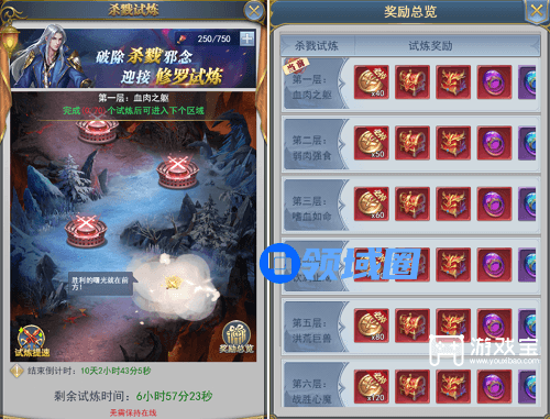 杀戮试炼分为六层考验,每层共有若干个试炼点,完成该层所有考验可进入下一层,试炼层数越高,则掉落的奖励越好!