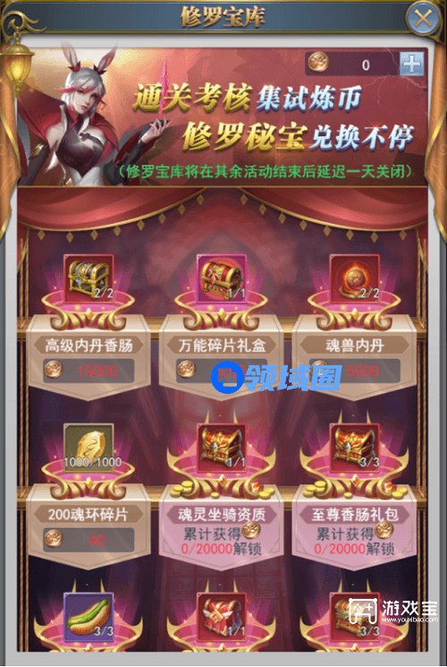 魂师们可以消耗试炼币在修罗宝库中兑换各种珍稀奖励