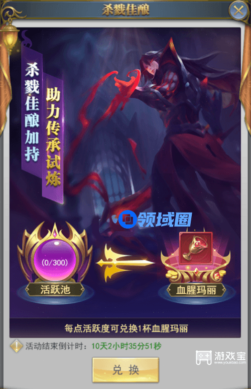 活动期间日常获得的活跃值将会存入活跃池中,可消耗活跃池中的活跃点数兑换血腥玛丽进行试炼,1点活跃点数兑换1杯血腥玛丽