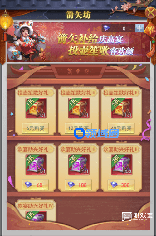 活动期间,可在箭矢坊中购买超值折扣礼包,获取箭矢,助力投壶赢好礼!