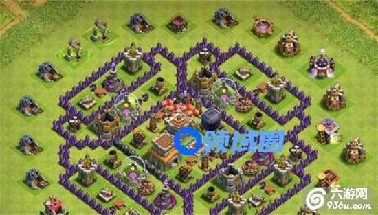 3、部落城堡放在中心,、骷髅兵,蛮王放中心区域,中心区域防御极强,而且援兵不易被引出