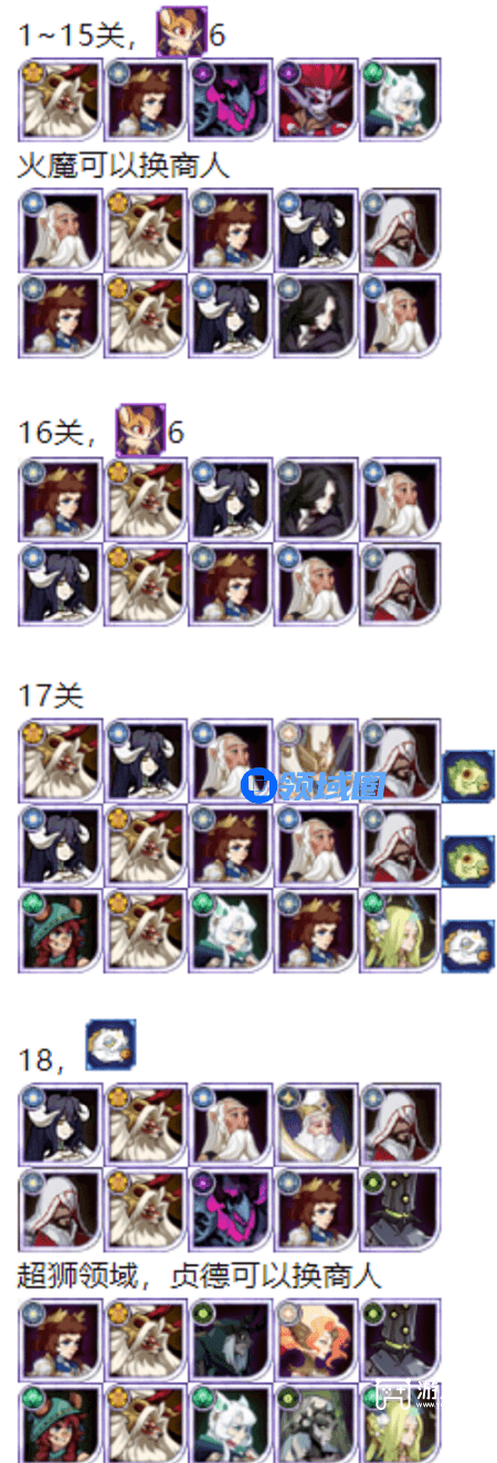 1、1-18关可以参考下图的阵容来进行上阵,注意每一关的宠物。