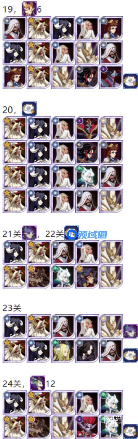 2、19-24关卡阵容参考下图,24关二排阵容手动,SP狐狸不开大。