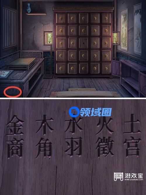 4、点击柜子,将扣环装在柜子中央空缺处,按照纸页提示依次点击扣环,获得琴弦