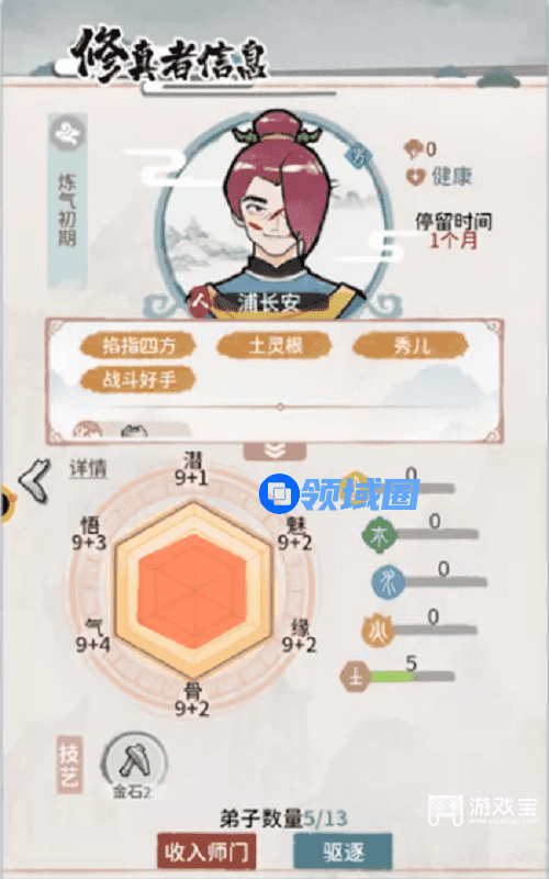 6、换掉队伍中一个六维9+(现在队伍里应该至少有一个,换下去挂秘境,如果有更好的机缘工具人就换掉队伍里最菜的),然后所有的修为丹都给柳莫,直到把柳莫养到金丹,属性丹给小师妹和掌门或者自己招募的属性比柳莫好的。