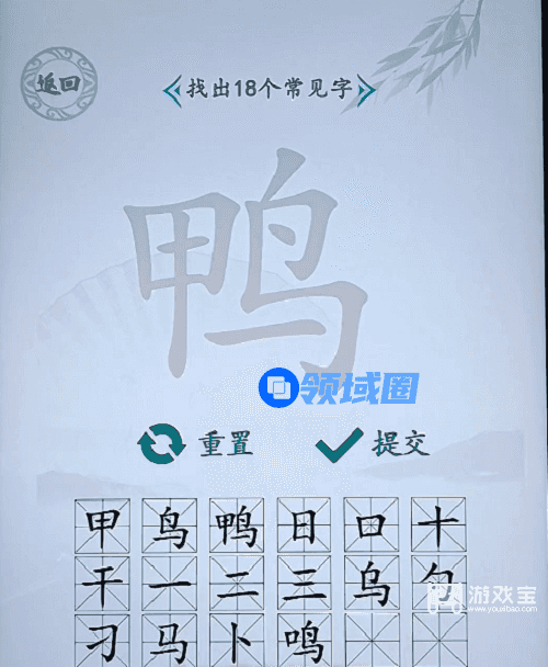 2、不知道这18个汉字是哪些的可以按照上面的答案在鸭子上面写出,还有其他的答案玩家也可以尝试一下。