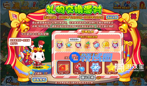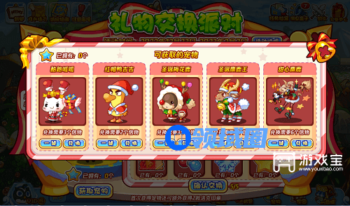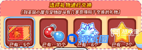 4、根据当天的宠物提示,选择宠物特别喜欢的礼物进行交换(选对特别喜欢的礼物可提升特别信物的掉率,虽然一样可能脸黑没换到),可在礼物池中交换到:努力值果实、洛克贝、特别信物等礼物。