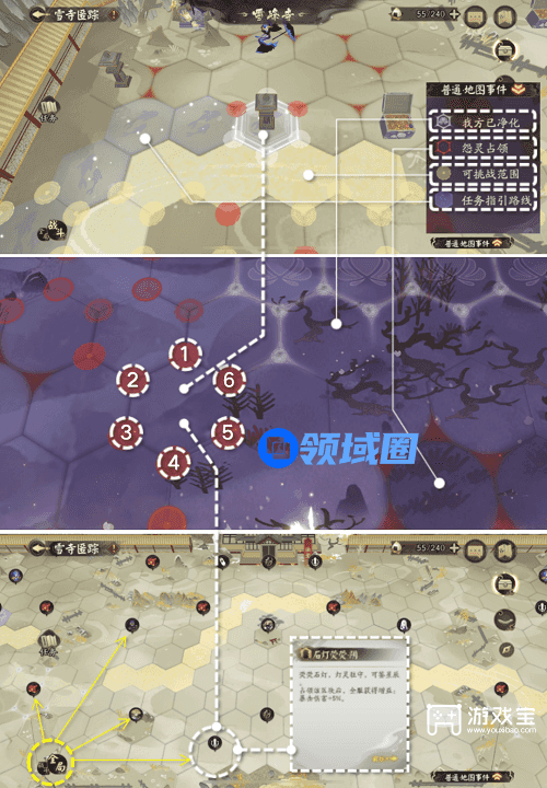 4、活动玩法:地图由6边形格子组成,通过击杀格子的6个端点上的妖怪才能占领那块地图,获取格子上的奖励同时向前行进。