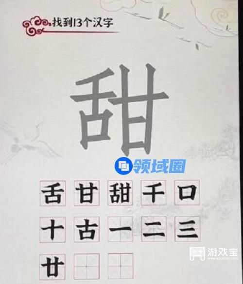 2、不知道这13个汉字是哪些的,可以参考上面的答案在甜字上面写出提交,写满13个即可通关。