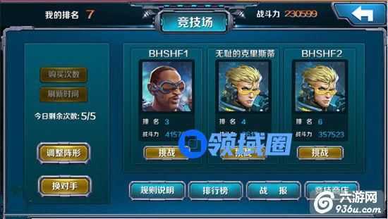 竞技场主要为了体现玩家所拥有的机甲整体实力,同时也是一些高级机甲、高级英雄、高级道具的购买之地。