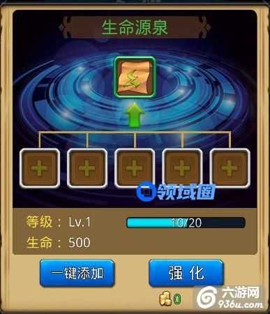 点击雕文图标,弹出该雕文的强化界面。可以知道,需要5件物品进行强化其中一个的等级,每个阶段的装备与雕文共鸣所能加成的属性。现阶段最高能强化共鸣等级是6级。