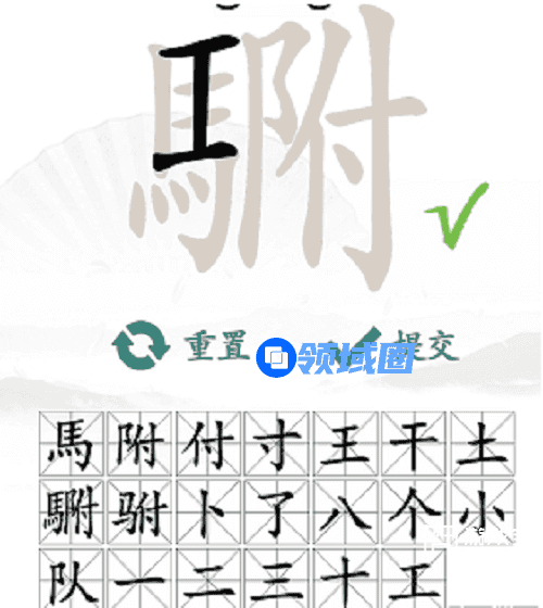 1、马、附、付、寸、王、干、土、驸、驸、卜、了、八、个、小、队、一、二、三、十、工。