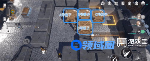 4、D号箱子向右移动2格,C号箱子向上移动1格,D号箱子向下移动1格,A号箱子向下移动1格,B号箱子向右移动2格,A号箱子向右移动2格,然后向下移动1格,解谜完成。
